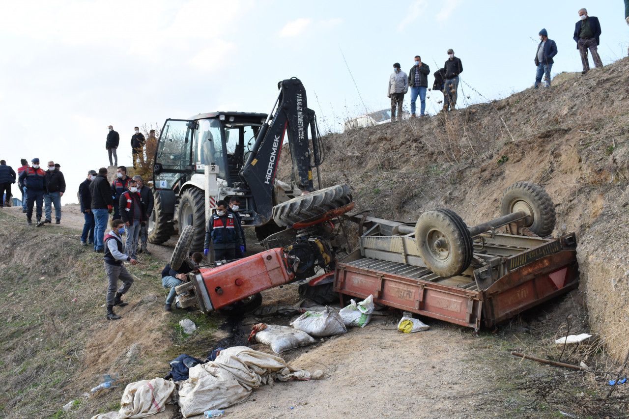 Çamköy Mahallesi'nde zeytin toplama işinden dönen Nuri Dinçer yönetimindeki 09 TE 786 plakalı traktör, sürücünün direksiyon hakimiyetini kaybetmesi sonucu yoldan çıkarak takla attı.