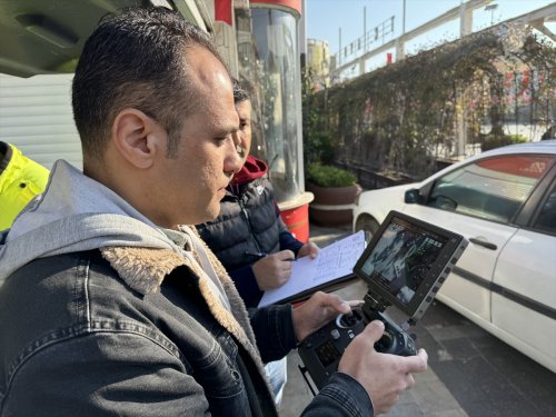 Denetimlerde; kırmızı ışık ve emniyet kemeri gibi trafik kurallarına uymayan sürücüler dron ile tespit edildi.