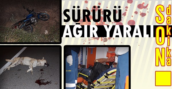 Nazilli'de seyir halindeyken köpeğe çarpan motosiklet sürücüsü şarampole uçarak ağır yaralandı. Köpek olay yerinde can verirken motosiklet kullanılmaz hale geldi.
