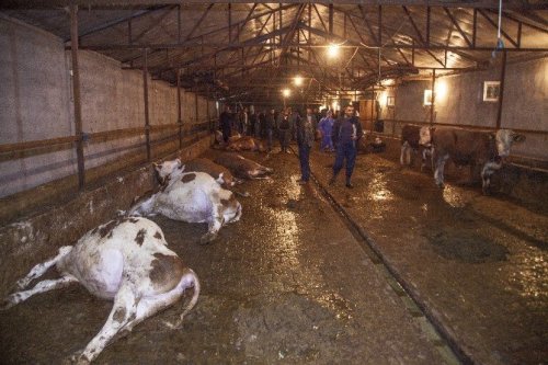 Bitlis’in Ahlat ilçesine bağlı Ovakışla beldesindeki bir çiftlikte büyükbaş 26 hayvan telef oldu. Dün gece bilinmeyen bir nedenle telef olan hayvanların yaklaşık 200 bin TL maddi değeri olduğu belirti...