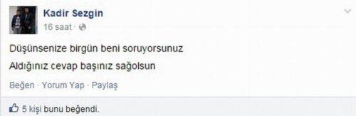 Öte yandan, kaza kurşunuyla hayatını kaybeden Kadir Sezgin’in olaydan yaklaşık 4 saat önce sosyal medya hesabında, “Düşünsenize bir gün beni soruyorsunuz, aldığınız cevap başınız sağolsun” cümlesini paylaşması dikkat çekti.