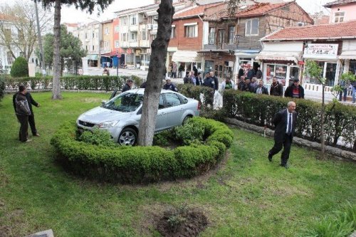 Gazla Freni Karıştırdı, Bankanın Bahçesine Girdi