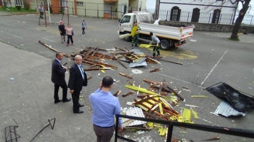 Giresun’da etkili olan fırtına bazı çatıların uçmasına ve bazı ağaçların da dallarının kırılmasına yol açtı.