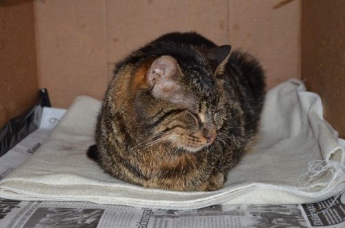 İşyerinde beslediği ve bir dakika yanından ayırmadığı kedinin tüm yaşamının karton kutu içinde olduğunu kaydeden Tartıcı, şöyle devam etti: