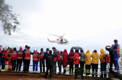Helikopter olay yerine ulaştıktan sonra iki görevli personel 25 metre yükseklikten halatla aşağı inerek yaralının üzerinde bulunduğu sedyeyi halatla bağladı. Sedye ve yaralı bir personel eşliğinde yukarı çekilerek helikoptere alındı. Diğer personelin de çekilmesinin ardından yaralı helikopterle hastaneye sevk edildi. Karaoğlan Parkı’ndaki seyir terasından çok sayıda vatandaş, ekiplerin müdahalesini merakla izledi. Vatandaşlar cep telefonları ile kurtarma anlarını görüntüledi. Yağmurlu havaya rağmen ekipler başarılı bir kurtarma gerçekleştirdi.