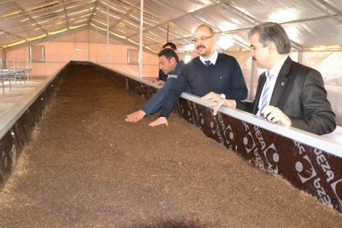 Kayseri İl Gıda Tarım ve Hayvancılık İl Müdürü Özkan Kayacan, Bünyan ilçesinde iki genç girişimcinin solucan gübresi üretim alanına yaptığı yatırımı yerinde inceledi.