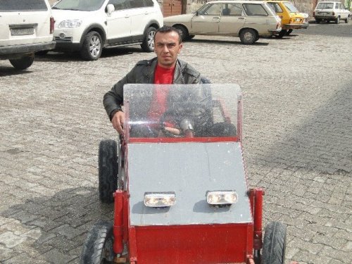 Aracın saatte 60 kilometre hız yaptığını söyleyen Ilgın, "Araç çok güçlü ve çıkamayacağı yer yok. Ben bu aracı 6 aylık süre içinde yaptım. Yolda kalan bir otomobili rahatlıkla çekebilecek bir güçte. Direksiyon kutusunu da başka bir otomobilden sökerek koydum. Arkadan çekişli olan aracım benzinli ve 1 litre benzin ile 10 kilometre yol yapıyor" diye konuştu.