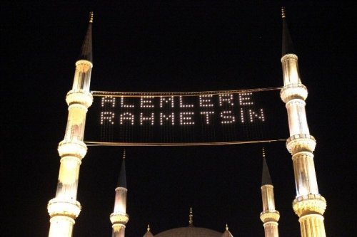 Mimar Sinan’ın ’Ustalık eserim’ dediği UNESCO Dünya Kültür Mirası Listesi’nde yer alan tarihi Edirne Selimiye Camii’nde 16 yıl aradan sonra bir ilk yaşandı. Kutlu Doğum haftası dolayısıyla tarihi caminin eşsiz minareleri arasına 250 adet ampul kullanılarak ’Alemlere Rahmetsin’ yazılı mahya açıldı.