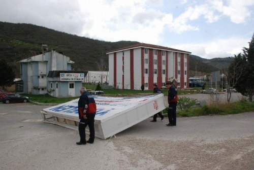 Tokat’ta şiddetli rüzgar nedeni ile Tokatspor Kulübü önündeki reklam tabelası devrildi, başına çatından sac parçası düşen bir kişi yaralandı.Tokat’ta öğle saatlerinde etkili olan şiddetli rüzgar neden...